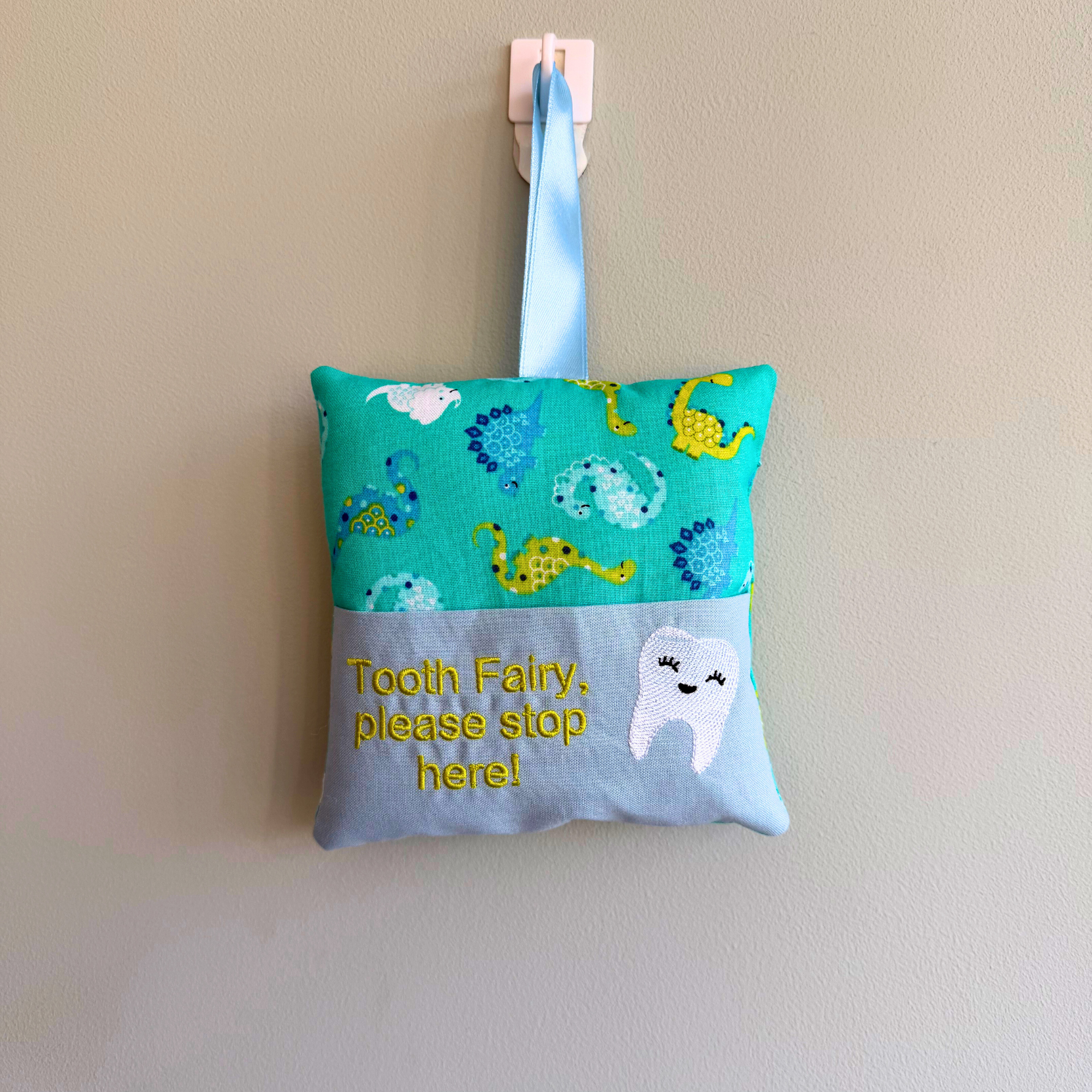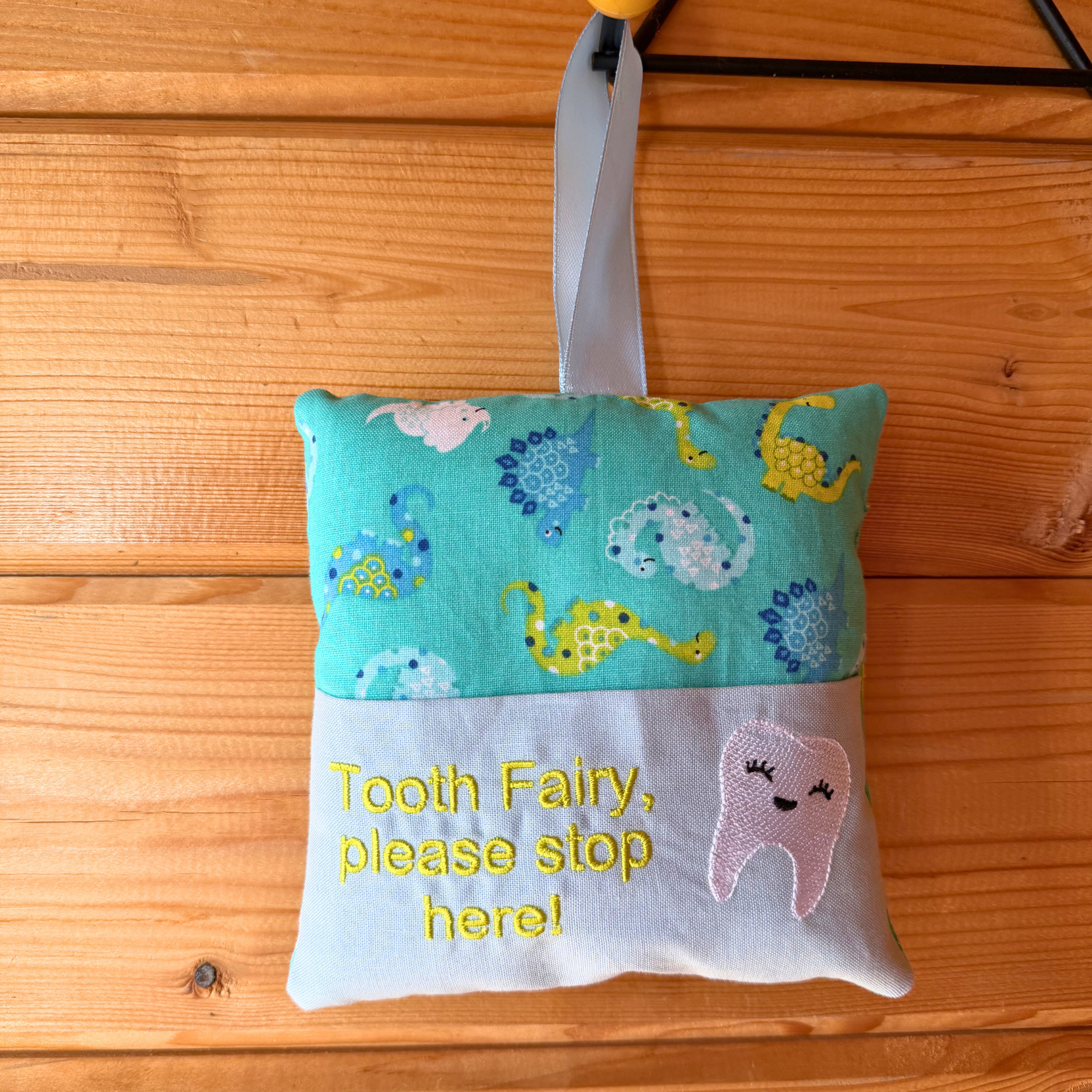 A lovely little cushion which can be hung beside the bed or on the door. Perfect for keeping little teeth safe until the Tooth Fairy collects and leaves a little gift in the pocket.